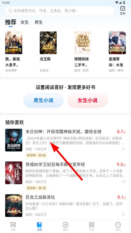 1、打開星空小說app,在首頁選擇想要閱讀的小說。