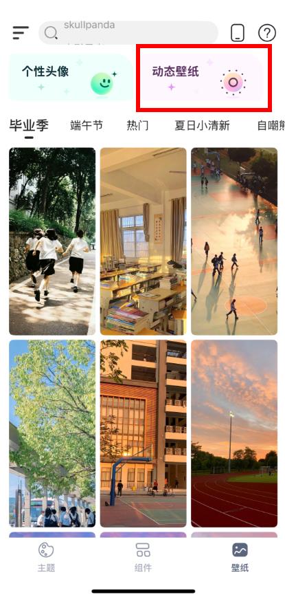 2、在壁紙界面中找到并點(diǎn)擊動(dòng)態(tài)壁紙按鈕,進(jìn)入動(dòng)態(tài)壁紙專區(qū)。