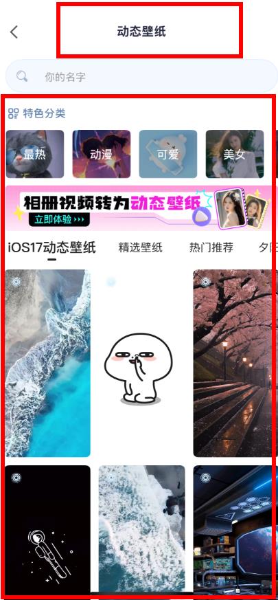 3、在動(dòng)態(tài)壁紙頁(yè)面,通過(guò)特色分類挑選喜歡的動(dòng)態(tài)壁紙,按照提示操作即可將其設(shè)置為手機(jī)動(dòng)態(tài)壁紙。
