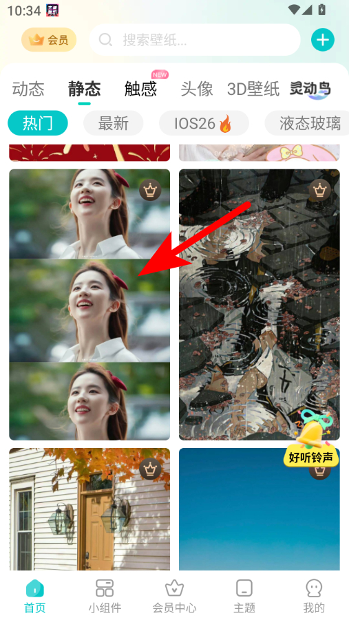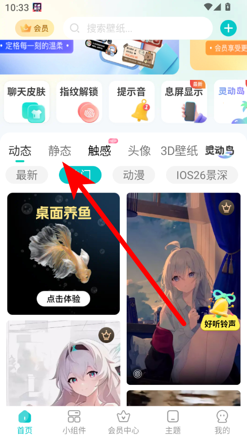 1、在APP首頁(yè),點(diǎn)擊靜態(tài)選項(xiàng),進(jìn)入靜態(tài)壁紙界面。