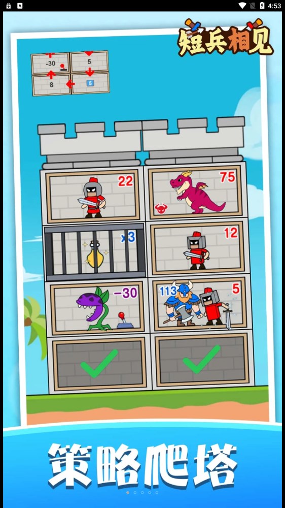 短兵相見游戲是一款休閑的游戲,玩家控制自己的角色使用武器,跟敵人進行戰(zhàn)斗,打敗敵人可以獲得他的攻擊力,慢慢的提升自己,面對更加強大的敵人,場景很豐富,不同的場景可以給玩家在不同的游玩感受,快來試試。