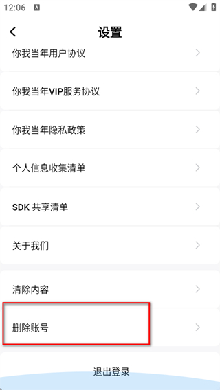 3、進(jìn)入設(shè)置頁面后,點(diǎn)擊刪除賬戶選項(xiàng)。