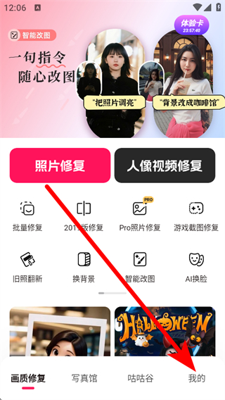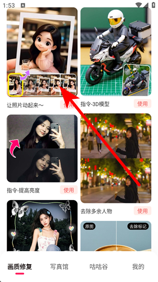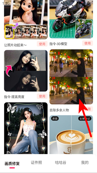 1、打開你我當(dāng)年APP,在畫質(zhì)修復(fù)頁面中,點(diǎn)擊去除多余人物功能選項(xiàng)。