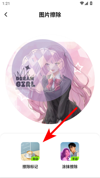 4、圖片添加后,點(diǎn)擊擦除標(biāo)記選項(xiàng),即可自動(dòng)去除圖片中的多余人物。