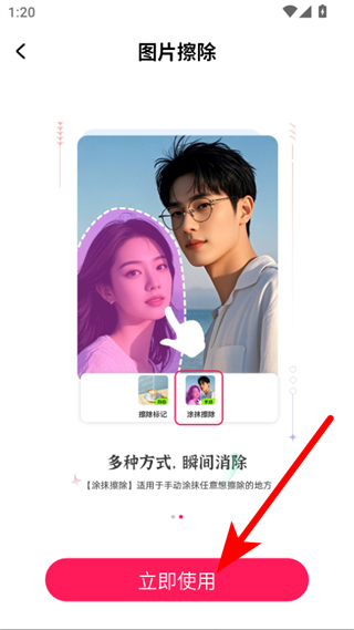 2、進(jìn)入圖片擦除功能介紹頁面后,點(diǎn)擊立即使用按鈕。