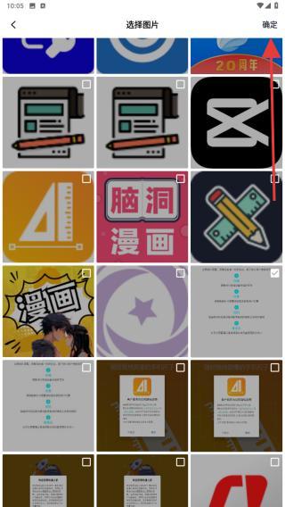 2、在選擇圖片的頁面內(nèi),選擇并點(diǎn)擊右上角確定。