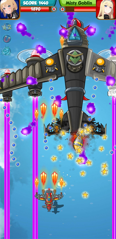 前鋒少女1945游戲是一款休閑的游戲,玩家變身為前鋒少女駕駛自己的戰(zhàn)機,在關卡里進行射擊,消滅大量的敵人,關卡是非常的豐富的,里面的戰(zhàn)斗畫面很刺激,整個界面都是子彈,將關卡里面所有的敵人全部擊敗,通過關卡,快來試試。