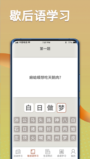 3、有成語模式,讓用戶學(xué)習(xí)不再枯燥,更有虛擬有趣的關(guān)卡等待用戶體驗(yàn);