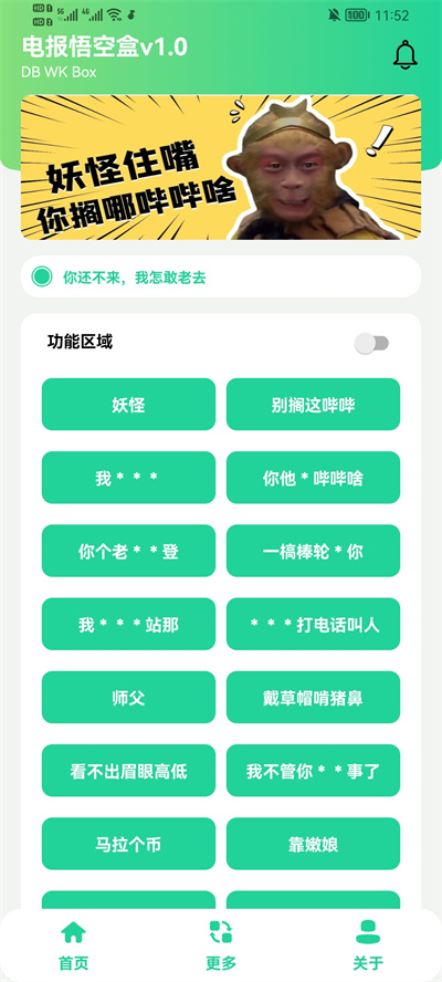 電報悟空盒app是一款可以給予用戶們一個娛樂化的熱門語音選擇,在針對如今的語音盒的選擇應用上,如今各種的聲音都可以給予大家選擇,其中如今的在針對語音盒上的使用上,該應用給予了更多的熱門語句。