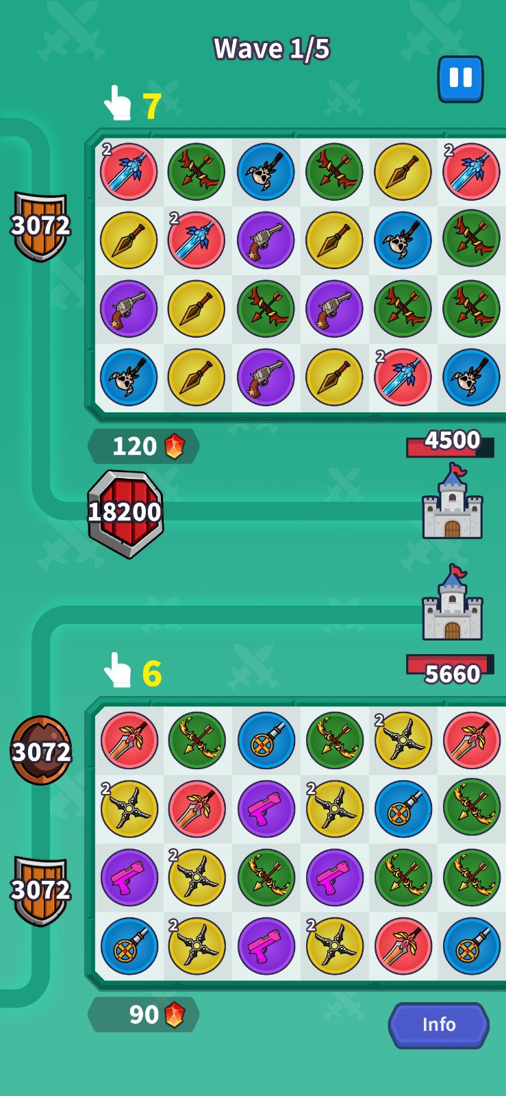 3、結(jié)合你自己的劍、矛、弓、手里劍和槍?zhuān)?jí)你的城堡,打造最好的團(tuán)隊(duì)!。