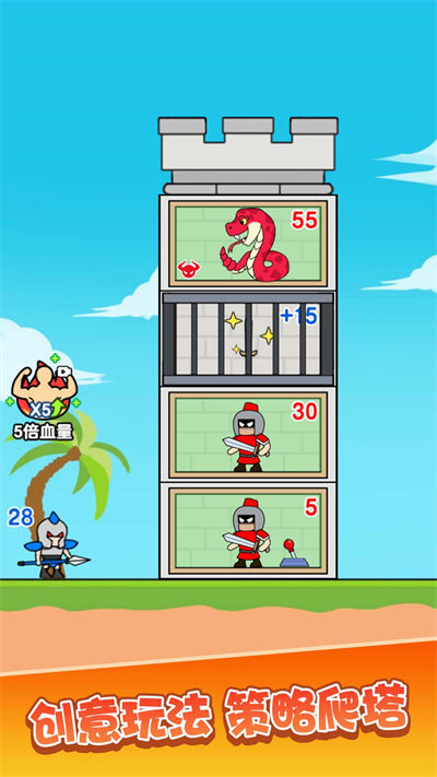2、全新的創(chuàng)意玩法,游戲設計了獨特的爬塔模式,給玩家新鮮的游戲體驗;