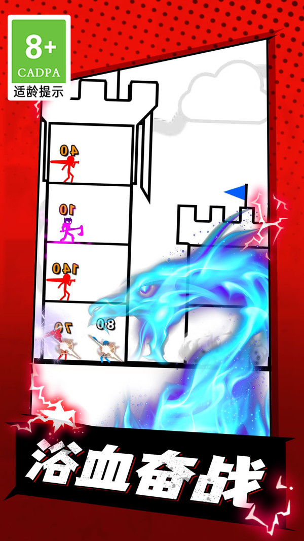 1.這里進(jìn)行一場(chǎng)史詩級(jí)的爬塔闖關(guān),控制火柴人不斷決斗。