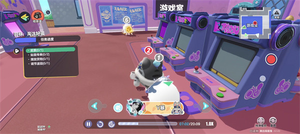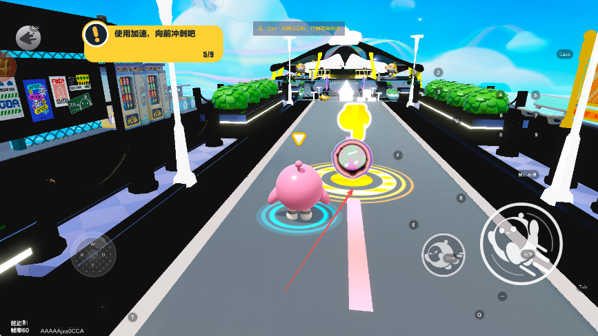 2、遇到使用加速,向前沖刺吧提示,在合適時機點擊加速按鈕,讓蛋仔快速向前,通過前方道路,獲取道具或到達指定地點。