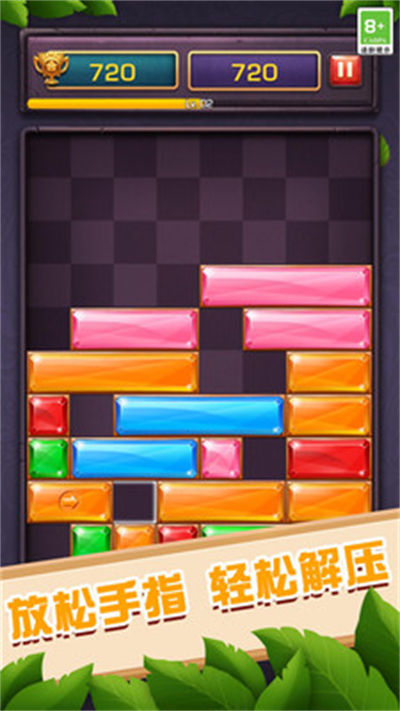 2、卡通風(fēng)格的游戲畫(huà)面,果凍質(zhì)感的方塊,顏色鮮亮,看上去充滿(mǎn)動(dòng)感,玩起來(lái)十分的解壓;