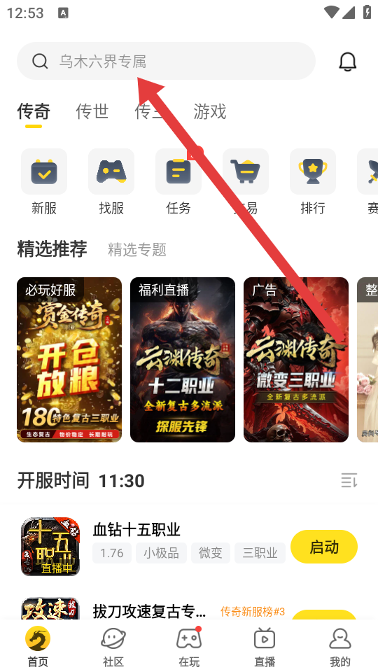 1、打開(kāi)996傳奇盒子APP,在首頁(yè)頂部找到搜索框,輸入目標(biāo)游戲關(guān)鍵詞如木影沉默。