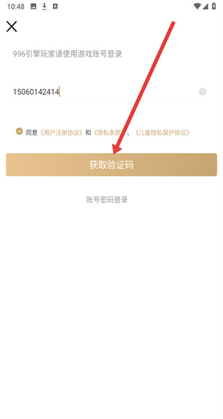 3、在填寫(xiě)好手機(jī)號(hào)后,可以點(diǎn)擊下方獲取驗(yàn)證碼按鈕,進(jìn)行獲取驗(yàn)證碼。