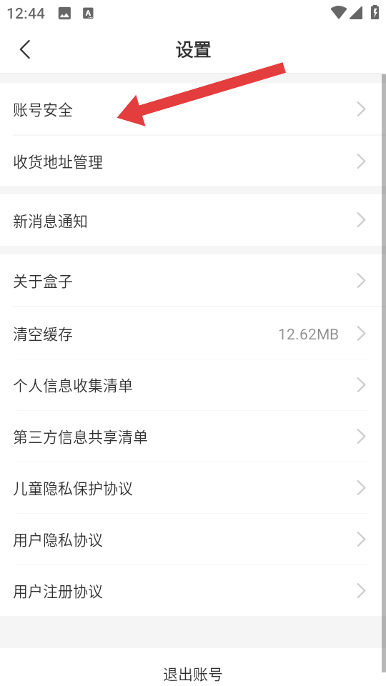 1、打開996傳奇盒子APP,進(jìn)入設(shè)置的頁面,點擊賬號安全的選項,進(jìn)入賬號安全設(shè)置界面。