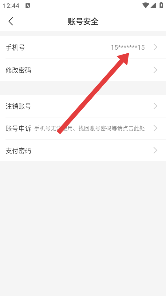 2、在賬號安全的頁面中,需要點擊手機號的選項,進(jìn)入修改手機號的頁面。