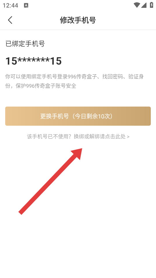 3、在修改手機號頁面,點擊該手機號已不使用,換綁或解綁請點擊此處,按提示完成手機號解綁操作。