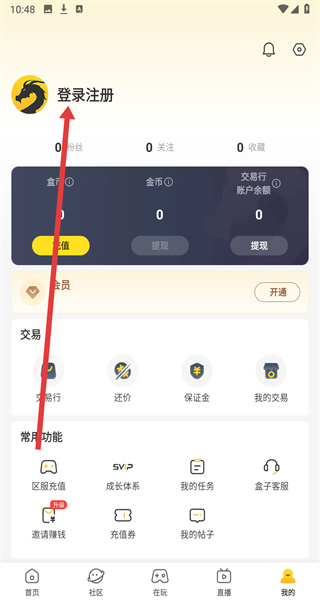 2、在進(jìn)入到我的主頁后,可以點擊上方登錄注冊按鈕,進(jìn)行登錄操作。