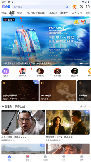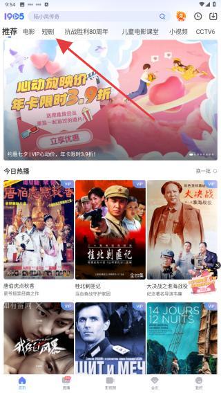 1、打開1905中國電影網(wǎng)的APP,點擊上方短劇的標(biāo)簽。