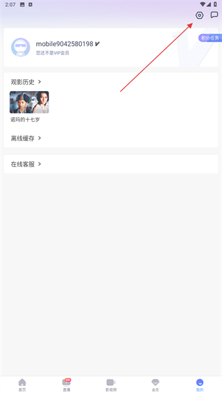 2、進(jìn)入我的頁面內(nèi),點擊右上方設(shè)置的功能按鈕。