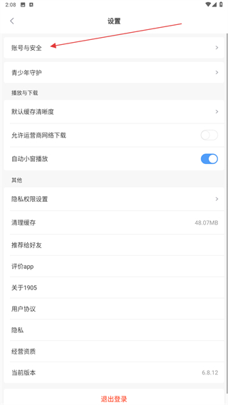 3、進(jìn)入設(shè)置的界面內(nèi),點擊賬號與安全的按鈕。