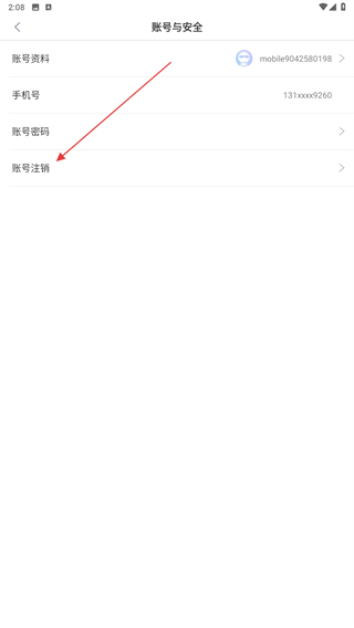 4、在賬號與安全的頁面內(nèi),點擊賬號注銷的按鈕即可。