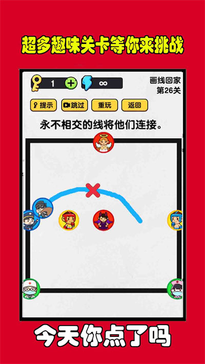 今天你點了嗎游戲是一款輕松解壓的休閑游戲,這里有各種有趣的關卡類型,每個關卡都有不同的任務,玩家需要根據要求來畫出路線或者完成操作,游戲玩起來十分燒腦,玩家可以在這里自由發(fā)揮自己的腦洞,看看自己能闖到哪一關。