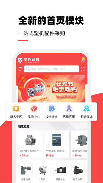 塑購商城app是一款可以給予大家獲得更好的塑機機器和設配為主的線上購物平臺支持,大家在針對如今的機器采購服務上可以帶來更好的配件服務平臺選擇,大家可以從中獲取到更好的選購服務。