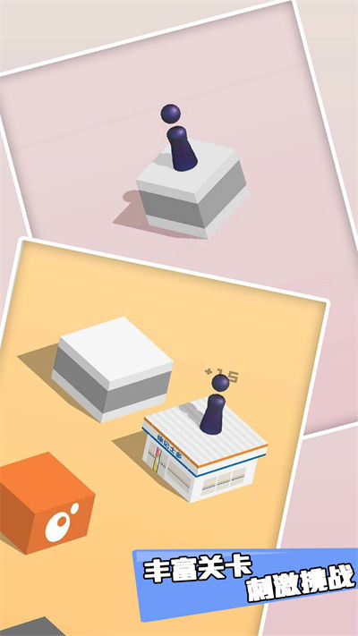 1、簡單輕松的游戲玩法,沒有復(fù)雜的技巧,玩家只需操控小人從一個(gè)箱子跳上另一個(gè)箱子就可以完成操作,但是想要獲得高分也不容易;