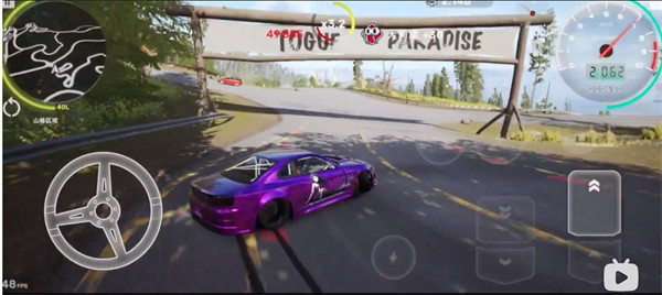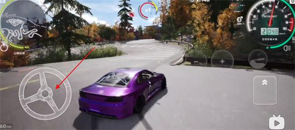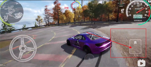 4、右側(cè)的板塊可以加油門或者踩剎車,這樣能和方向配合使用,輕松做出飄逸等經(jīng)典賽車動作;