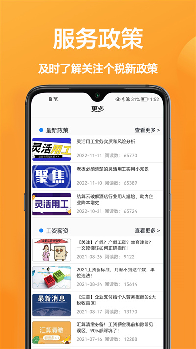 詳細(xì)的服務(wù)政策管理支持和,幫助大家及時(shí)的了解關(guān)注個(gè)稅新政策。