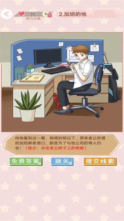 舔狗日記游戲是一款非常魔性搞笑的休閑游戲,玩家在游戲中將會(huì)扮演一個(gè)有男朋友的女生,但是在相處的日常生活中,男友有很多不對(duì)勁的地方,玩家需要在各個(gè)場(chǎng)景中尋找線索,看看他到底是不是出軌了,游戲的過程十分搞笑,玩家可以在這里盡情體驗(yàn)精彩的劇情。