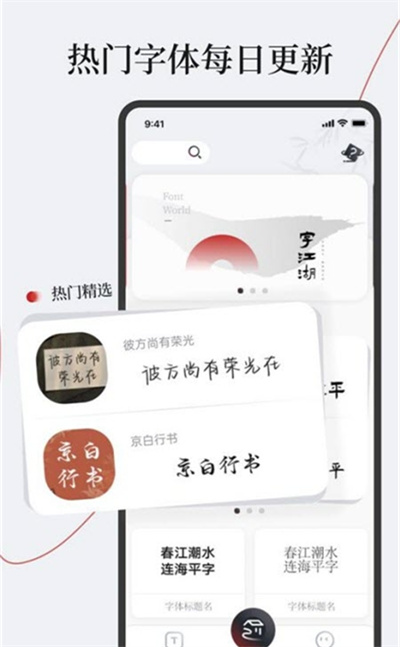 字江湖app是一款可以給予大家獲得更多豐富的字體軟件,在針對(duì)如今手機(jī)的字體使用上,單一的字體總是讓人們難免看的無趣,所以如今該應(yīng)用中可以獲取到更多的字體選擇,帶來更好的風(fēng)格特色。
