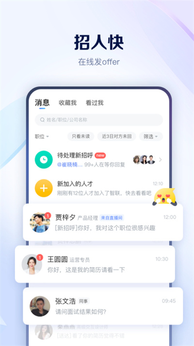 3、在線(xiàn)進(jìn)行溝通工作線(xiàn)上面試邀約更方便,給予大家更請(qǐng)偶是那個(gè)的找尋到自己的工作。
