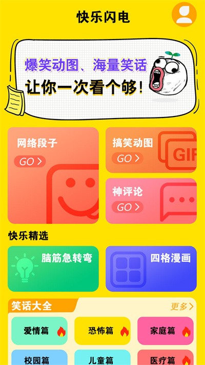 快樂閃電app是如今一款可以給予大家獲得更多高效內(nèi)容的應(yīng)用軟件,在針對如今的高效內(nèi)容查詢服務(wù)上,我們可以看到該應(yīng)用給予了大家更多的爆笑段子,可以帶來生活上的各種熱門笑話。