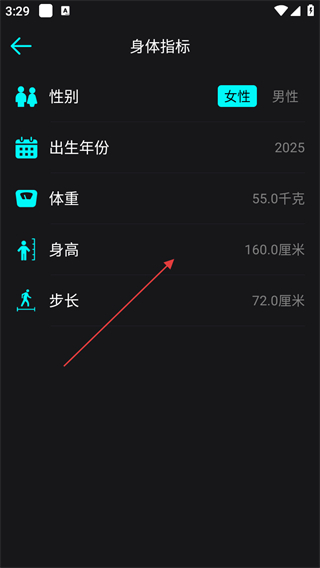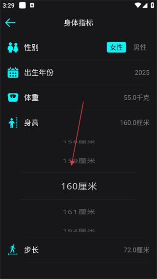 4、調(diào)整身高數(shù)值,即可完成身高數(shù)據(jù)的修改。