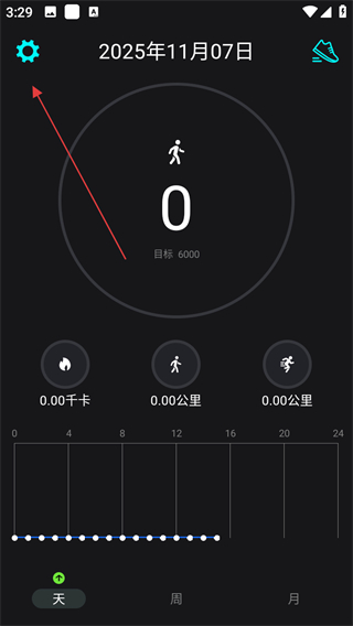 1、打開運動跑步APP,點擊左上角設置圖標,進入設置頁面。