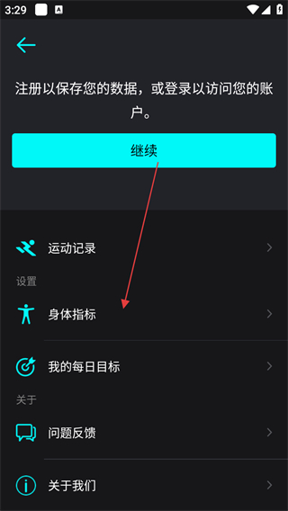 2、在設置頁面,點擊身體指標選項。