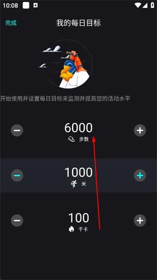3、在每日目標設置頁面,通過+-調(diào)整步數(shù)目標。