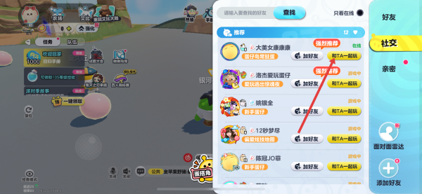 在這里大家可以給予從中與認(rèn)識的蛋仔或者陌生蛋仔一起體驗(yàn)互動游戲。