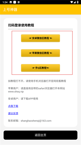 2、在教程頁面,選擇安卓微信區(qū)教程,蘋果微信區(qū)教程或手Q區(qū)教程等對(duì)應(yīng)的按鈕。