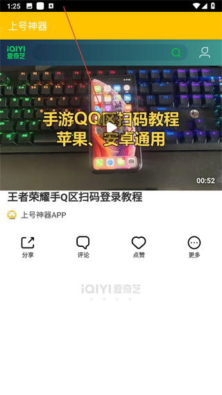 5、若點(diǎn)擊手Q區(qū)教程,即可觀看適用于蘋果、安卓的手游QQ區(qū)掃碼教程視頻。