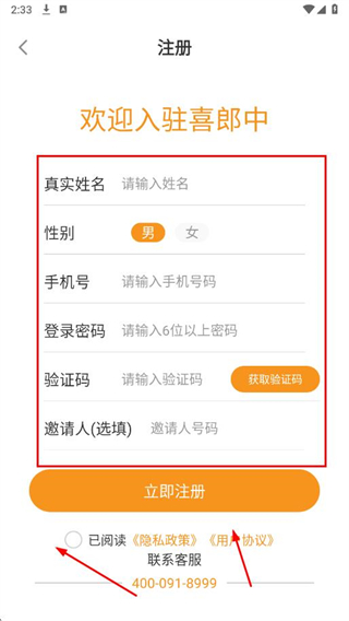 2、填寫信息,勾選協(xié)議,點擊立即注冊。