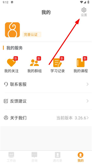 1、在喜郎中我的界面,點擊右上角設(shè)置,進入設(shè)置界面。