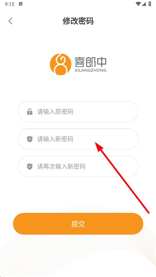 4、在修改密碼界面,輸入原密碼、新密碼,點擊提交按鈕,即可完成喜郎中密碼的修改。