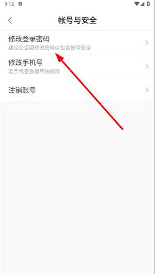3、在帳號與安全界面,點擊修改登錄密碼,進入修改密碼界面。