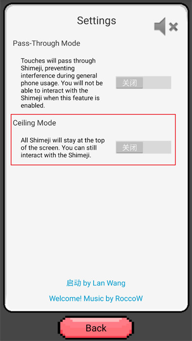4、最后,會看到具體的模式選擇,點擊第二個開關(guān),即可開啟【天花板模式】,這樣小球球只會在頂端活動啦。