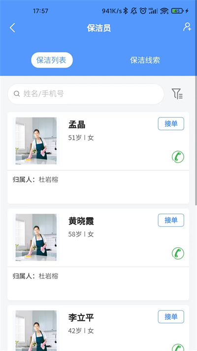 1、平臺(tái)支持快速查詢保潔人員信息,隨時(shí)可以聯(lián)系到保潔人員;